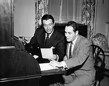 ![]() Robert Taylor and Dan Seymour work on the television and radio program We, the People, 1950 | |