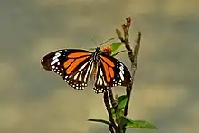 It ranges from Assam in eastern India through South-East Asia south to Indonesia, and eastwards to the Philippines and through southern China to Taiwan.[1][2] It has around 17 subspecies, and its closest relative is the Malay tiger, Danaus affinis.[2]