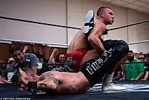 Garcia locked on a Sharpshooter, the one he's calling the Dragon Tamer, but Danielson turned it into the LeBell Lock.