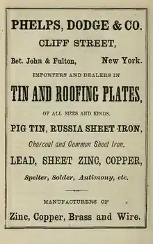 - ↑ Wells, David Ames (1875). Congress and Phelps, Dodge & Co. An extraordinary history. New York. p. 28. Retrieved 13 October 2016.
