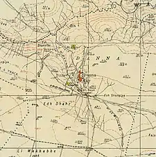 Victor Guérin described in 1875 the village as being "humble", and situated on a hill. He noted that it had once been much larger, as north of the village centre were ruins of houses.[15] In 1882, the PEF's Survey of Western Palestine described Danna as being situated on a slope, and surrounded by farmland. There was a spring with a watering trough to the west. The village houses were built of stone and adobe.[16]