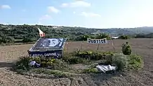 A number of protesters who took part in the rally also went on to the police headquarters in Floriana to call for the police commissioner's resignation. After staging a sit-in protest in front of the main door, a banner with a photo of police chief Lawrence Cutajar accompanied with the words "No change, no justice – irrizenja (resign)" was placed on the headquarters' gate.[69]