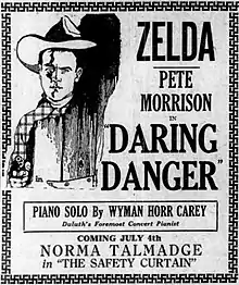 Daring Danger is a 1922 American silent Western film directed by Clifford Smith and starring Pete Morrison, Esther Ralston and Lew Meehan.[1] [2]