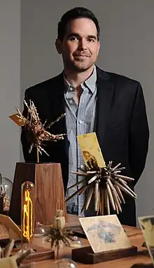 Dario Robleto (born 1972) is an American transdisciplinary artist, researcher, writer, teacher, and “citizen-scientist”. His research-driven practice results in intricately handcrafted objects that reflect his exploration of music, popular culture, science, war, and American history.