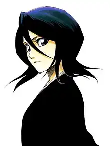 Rukia was the first character of the series created by Kubo, her design being the one he decided to use for all the other Soul Reapers.[3] Reaction to her character is generally positive. Her differences from typical shōnen heroines is praised,[4] as is her interaction with other characters.[5] Additionally, she usually ranks second in Weekly Shōnen Jump's Bleach popularity polls, and is consistently the most popular female character in those polls.[6] Several pieces of merchandise have been released in Rukia's likeness, including a plush doll and several figurines.