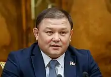 Dastan Jumabekov (Kyrgyz: Дастан Жумабеков; born 2 November 1976) is a Kyrgyz politician who has served as Speaker of the Supreme Council of Kyrgyzstan, the country's parliament, since his appointment on October 25, 2017. He was elected Speaker with a vote of 80-30 MPs, succeeding the outgoing Chynybaĭ Tursunbekov, who had stepped down to “preserve stability in the country”.[1]