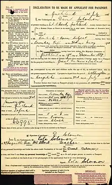 David Solomon passport application (1935)