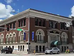 The period of significance for the historic district is from 1850, when the present St. Anthony's Church was begun, until 1968 when the present Davenport Public Library was completed.[2] During the intervening years buildings were constructed for civic, commercial, light industrial, entertainment, multiple dwelling, and fraternal uses. By the 1890s the city had become the financial center of the region and the state.[6] The district was the location for the city's financial institutions, including the city's tallest building, Davenport Bank and Trust (1927).[7] Several hotels, including the Davenport Hotel (1907), were built in the district to serve the main train stations and Hotel Blackhawk (1914, 1920) was a convention-oriented hotel. In addition to the county courthouse, the district also includes Davenport City Hall (1895), Central Fire Station (1901), and the United States Courthouse (1933). Light industrial uses included cigar manufacturing, wood planning, and carriage and plow manufacturing before those buildings were converted into other uses. Initially, commerce focused on dry goods, groceries, specialty stores, and wholesale goods before fashionable department stores were built, including the J.H.C. Petersen's Sons' Store (1892) and M.L. Parker (1922). Multiple theaters were located in the district, but only two remain the Capital Theatre (1922) and the former RKO Orpheum (1931). Of the apartment buildings constructed downtown, the Dorothea (1910) was one of the few buildings constructed by a woman.[2]