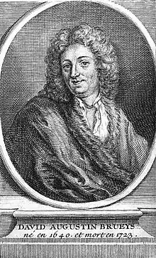 David-Augustin de Brueys (18 September 1641  25 November 1723) was a French theologian and playwright. He was born in Aix-en-Provence. His family was Calvinist, and he studied theology. After writing a critique of Jacques-Bénigne Bossuet's work, he was in turn converted to Catholicism by Bossuet in 1681, and later became a priest.[1]
