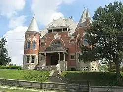 David Alonzo and Elizabeth Purviance House is a historic home located at Huntington, Huntington County, Indiana. It was built in 1892, and is a 2+1⁄2-story, Romanesque Revival / Châteauesque style brick and stone dwelling. It has a modified rectangular plan and is topped by a slate hipped roof. The house features two corner towers (one rounded and one octagonal), semicircular arches, varied window shapes and sizes, and pressed metal decoration.[2]: 5–6