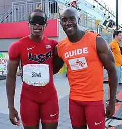 David Brown (born October 19, 1992) is a visually impaired American sprint runner. He competed over 100–400 m distances at the 2012 and 2016 Paralympics and 2013 and 2015 world championships and won the 100 m event in 2015 and 2016.[2] He currently holds the world record in the 100 m and 200 m run for the T11 class – being the first totally blind athlete to run 100 m within 11 seconds – as well as the paralympic record in the 100 run.[1][3][4]
