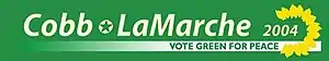 Cobb selected as his running-mate activist and 2002 gubernatorial candidate Pat LaMarche of Maine.[5] This marked the first time that the Green presidential ticket included two candidates who were registered Greens, unlike in 2000.[5]