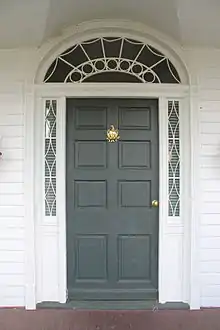 The evolution of the house is complex, displaying evidence of at least five building periods. The main block of the Compton House was originally only a three-bay dwelling, including the current stair hall and north parlor—the only rooms with a cellar beneath. The house was expanded to a center hall plan around 1840 through the addition of the south parlor, which sits above a crawlspace. The Greek Revival porch, which spans the center three bays, was likely added at the same time. An interesting adaptation is the cut-out in the porch ceiling to accommodate the full height of the original fanlight above the original doorway. When David Compton died in 1838, his assets totaled $22,638, including a store on the property, several sailing vessels, a mill in the nearby village of Buckshutem, and significant grain and timber.[1] Considering his wealth and his household size – 14 people including 4 adults – it seems likely that it was David who expanded his house from the original three-bay structure.