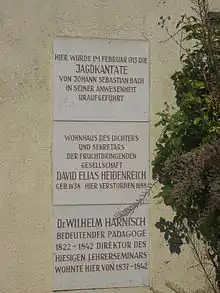 The composer David Pohle, a pupil of Heinrich Schütz, was Kapellmeister at the Saxon courts of Halle and Weißenfels. Heidenreich provided him with the libretti for a number of the Singspiel operas that he composed.[1] Heidenreich's 1665 Geistliche Oden (Sacred Odes) were also set to music by Pohle.
