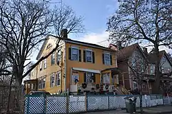 The David Perry House stands at the southern fringe of Bridgeport's downtown area, near the northwest corner of Lafayette Street and Railroad Avenue. It is a 2+12-story wood-frame structure, with a clapboarded exterior and a side gable roof pierced by an off-center brick chimney. Its main facade is three bays wide, with the main entrance in the rightmost bay, sheltered by a gabled porch supported by round columns. Sash windows occupy the other bays, which are irregularly spaced; the upper-level windows have headers with projecting cornices. The south-facing side elevation is four bays wide, with a half-oval window in the gable end.[2]