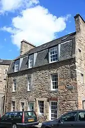 For the first few months of 1817, Roberts worked as the stage designer's assistant at the Pantheon Theatre, Edinburgh, a new joint venture between Bannister and an Italian musician named Corri.[6][7] However the Pantheon was a financial failure and closed in May 1817, putting Roberts out of work.[7] He reluctantly returned to house painting, working on the mansion house of Abercairny, near Perth, designed by Gillespie Graham. Although he was working from 5 a.m. to 7 p.m. he took the opportunity to sketch in the woods around the mansion in the evening.[8] He followed this up with a stint painting imitation wood and marble at a mansion at Condie, near Bridge of Earn, in Perthshire. At the urging of his parents, Roberts returned to Edinburgh in January 1818, where he took employment with John Jackson, a decorative painter.[8] Working for Jackson during 1818, Roberts decorated Lord Lauderdale's Dunbar House (known later as Lauderdale House) and then the library of Craigcrook Castle for Lord Jeffrey, who had recently leased the property.[3][8]