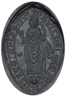 David de Bernham (died 1253) was Chamberlain of King Alexander II of Scotland and subsequently, Bishop of St Andrews. He was elected to the see in June 1239, and finally consecrated, after some difficulties, in January 1240. He died at Nenthorn in 1253 and was buried at Kelso.[1] One interesting feature of his life which has left a written record is the fact that as bishop of St Andrews he consecrated a long list of churches in his diocese. These churches are listed by name, together with the dates on which they were consecrated, in the 1240s, in a 13th-century Pontifical now in the Bibliothèque National, Paris (B.N. Latin 1218).