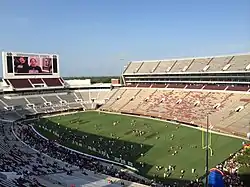 The stadium was built in 1914, as a replacement for Hardy Field,[5] and was called New Athletic Field. The first game it hosted was a Mississippi State win over Marion (Ala.) Military Institute, 54–0, on Oct. 3, 1914.[6] In 1920 the student body adopted a resolution to name the field Scott Field in honor of Donald Scott, an Olympic middle-distance runner and one of the university's football stars from 1915 to 1916.[7] Prior to the 2001 season the stadium was named Davis Wade Stadium in honor of longtime MSU supporter Floyd Davis Wade Sr., co-founder of Aflac, because of a large financial contribution he made toward stadium expansion. The playing surface retained the name Scott Field and the official name of the facility is "Davis Wade Stadium at Scott Field".[8]