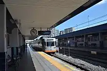 Atatürk Airport-bound Istanbul Metro line M1A train at Davutpaşa—YTÜ station.