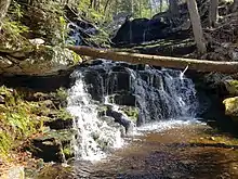 A multi-drop waterfall can be found along Day Pond Brook, dropping a total height of 40 feet (12 meters). The falls were once not well known and could not be accessed without bushwhacking. But in 2010, a spur trail was created by a Boy Scout to provide easier access to the falls for the public.[7]