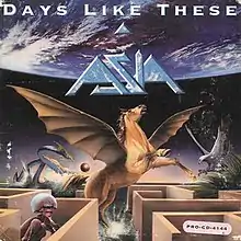 "Days Like These" is a song by British rock band Asia, issued as a 7" single on 17 August 1990 in Europe by Geffen Records. It had previously appeared on their compilation album Then & Now, released three days before, while its B-side, "Voice of America", was derived from the third studio album, Astra (1985). In the United States, two promotion only CD singles were also available. This unusually optimistic and upbeat Asia song was a major hit on rock radio, reaching #2 on the Billboard "Mainstream Rock" chart.