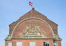 The company name seen on the gable of its former warehouse at Applebye Plads in Copenhagen