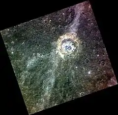 - ↑ Denevi, B. W., Ernst, C. M., Prockter, L. M., and Robinson, M. S., 2018. The Geologic History of Mercury. In Mercury: The View After MESSENGER edited by Sean C. Solomon, Larry R. Nittler, and Brian J. Anderson. Cambridge Planetary Science. Chapter 6, Table 6.4.