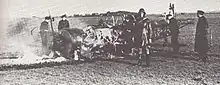 A pilot next to his downed Fokker D.XXI at De Kooy in May 1940 during the Battle of the Netherlands