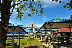Kombos's 15-hectare (37-acre) campus stands around a four-level building (91 x 18 meters) composed of classrooms and administration facilities. The increasing number and diversity of origin of the university's students reflect the rapid development of Unika De La Salle-Manado. In 2007, from 1,077 active students of Unika De La Salle Manado, approximately 20% came from outside the region such as Pontianak, Balikpapan, Samarinda, Jogjakarta, Jakarta, Papua,[8] Ambon and Ternate.