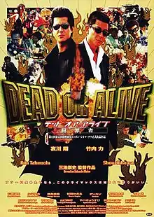Dead or Alive (DEAD OR ALIVE: 犯罪者, Deddo oa araibu: Hanzaisha, Lit. "Dead or Alive: Criminals"), abbreviated as DOA (Dii ō ei), is a 1999 Japanese yakuza action film directed by Takashi Miike. It stars Riki Takeuchi as the gang boss and former yakuza Ryūichi and Show Aikawa as the Japanese cop Detective Jojima and focuses on their meeting and conflict. It is the first in a loosely-connected three-part series, followed by Dead or Alive 2: Birds in 2000 and Dead or Alive: Final in 2002.