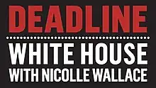 Deadline: White House is an American news and politics television program airing weekdays from 4 to 6 p.m. ET on MSNBC. It is hosted by NBC News senior political analyst Nicolle Wallace.[2]