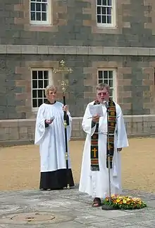 The former Dean of Jersey, Bob Key, leading the service at Elizabeth Castle during the annual Saint Helier Day pilgrimage, 2007