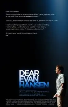 - ↑ @DearEvanHansenMovie (September 10, 2021). "Today is going to be an amazing day because you can now get tickets to see #DearEvanHansenMovie" (Tweet) – via Twitter.