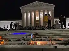 Hundreds of people began gathering in front of the Supreme Court in Washington, D.C., within hours of the news of Ginsburg's death. The Mourners' Kaddish was recited by mourners, along with songs such as "Amazing Grace" and "America the Beautiful".[11] Other gatherings were held in cities across the United States. Online memorials were created on social media platforms.[11] By the following morning, a makeshift memorial had been created on the steps of the court.[12][13][1]