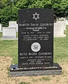 On September 29, a private funeral service was held at Arlington National Cemetery where Ginsburg was buried beside her husband, Martin D. Ginsburg, a US Army veteran. The ceremony was officiated by Holtzblatt with only "family, close friends, justices, and Ginsburg's staff" in attendance. The ceremony concluded with a playing of opera singer Leontyne Price singing two songs by Giacomo Puccini. The grave is located in Section 5 where nine other justices are also buried, including three with whom Ginsburg had served.[6]