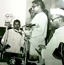 Deenanath Sewak taking oath as Minister of Government of Uttar Pradesh with G. D. Tapase, the then Governor of Uttar Pradesh