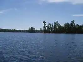 Deer Island Lake is a lake located in Gogebic County in the U.S. state of Michigan. The Lake is one of about 24 clear, clean lakes located in a special wilderness area known as the Sylvania Wilderness, which in turn is located within the Ottawa National Forest a few miles (6 to 8 km) to the west of the town of Watersmeet. The shoreline is completely undeveloped, and surrounded by virgin forest consisting mainly of hemlock and pine. This crystal-clear spring-fed lake is one of the most remote in the Sylvania Tract, but is well worth the journey for those intrepid enough to make it. The total surface area of the lake is 346 acres (1.4 km2), with maximum depths of 55 ft (17 m). The lake is named for the very large island in the center of the lake, which deer inhabit by crossing back and forth on the ice in winter. Several smaller islands and numerous rocky shoals add to the overall beauty of this fine body of water.