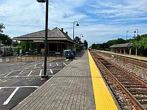 Deerfield is one of two Metra commuter railroad stations in Deerfield, Illinois along the Milwaukee District North Line. It is located at 860 Deerfield Road, 2 blocks west of Illinois State Route 43, is 24.6 miles (39.6 km) away from Chicago Union Station, the southern terminus of the line.[2] The station serves commuters between Union Station and Fox Lake, Illinois. As of 2018, Deerfield is the 39th busiest of Metra's 236 non-downtown stations, with an average of 1,133 weekday boardings.[1] The current station originally served the Chicago, Milwaukee, St. Paul & Pacific Railroad, and replaced two older stations built by the railway.