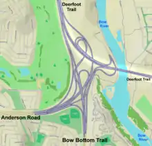 20. Google (27 October 2016). "Deerfoot Trail at Anderson Road and Bow Bottom Trail" (Map). Google Maps. Google. Retrieved 27 October 2016.