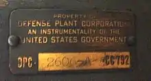 The Defense Plant Corporation,(DPC), was subsidiary of the Reconstruction Finance Corporation, a government corporation run by the United States federal government between 1940 and 1945. To win World War II the United States and its Allied Nations needed massive war production. Many private companies did not have the capital funds to meet the wartime demand for buildings and equipment. Defense Plant Corporation provided financial support to state and local governments.[1] Defense Plant Corporation also made loans to banks, railroads, mortgage associations, and other businesses supporting the war efforts.[2]