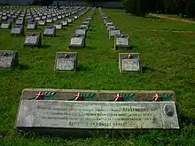 The German forces surrounded the quarries with barbed wire fencing, blocked the entrances and exits and bombed and shelled them. General Hermann Ochsner, the chief of the chemical forces, proposed the use of a non-lethal irritant gas to smoke the partisans out of such hiding places, but he was denied permission to carry out the attack[1] although survivors' testimonies claimed otherwise.[2][3][4]