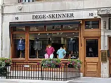 Dege & Skinner is a bespoke gentleman's tailor and shirt-maker located at 10 Savile Row, London. Founded in 1865, they are one of the oldest, continually operated bespoke tailoring companies in the world. They have the Row's first and only permanent on-site, bespoke shirt service.[1]