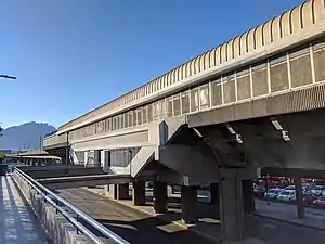 The Del Golfo Station (Spanish: Estación Del Golfo) is a station on Line 1 of the Monterrey Metro. This station is located in the Colon Avenue in the northeast side of the Monterrey Centre. The station was opened on 25 April 1991 as part of the inaugural section of Line 1, going from San Bernabé to Exposición.[1]