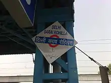 Sarai means an inn or resting place for travellers. The station is named after the medieval village it was located in. The village itself was named after a sarai, named after Ruhullah Khan, a noble in the Mughal court. Once it was a sarai on the busy road to Delhi and pilgrimage town of Ajmer. He was one of the three sons of Khalil Ullah Khan, the Governor of Delhi province during reign of Mughal Emperor Shahjahan, and also a distant relative of Empress Mumtaz Mahal. Over time, this name has been corrupted to Rohilla after Rohillas who ruled a region called Rohilkhand around Bareilly and Rampur northeast of Delhi during the Mughal era.[1]