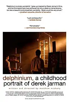 Delphinium: A Childhood Portrait of Derek Jarman is a 2009 short film based on the early years, work, and legacy of British artist and filmmaker Derek Jarman. The film was written and directed by Matthew Mishory and produced by Iconoclastic Features.[1] It was executive produced by Andreas Andrea. Keith Collins, Jarman's surviving muse, participated in the making of the film.[2] Jonathan Caouette served as a creative advisor. It is the first narrative work about the life of Derek Jarman.