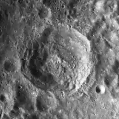 ![]() Crater Delporte as seen by the mapping camera of Apollo 15 | |