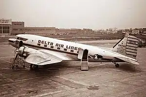 A Delta Air Lines DC-3 in Chicago in 1949, similar to the aircraft involved.