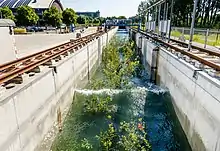 Delta Flume is a 300 meter long man-made flume with a wave generator that is capable of producing waves as tall as five meters, the world's largest artificial waves.[1][2][3] It is located at the Deltares Research Institute outside the city of Delft, Netherlands. It is used to simulate forces generated by natural waves in order to test materials used in the construction of dykes.[4] Especially for testing the effect of vegetation the full scale testing is essential.