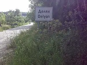 Delyan (Bulgarian: Делян) is a village in the Sofia Province, western Bulgaria, near the town of Breznik. The old historic name of the village is Karnul (Bulgarian: Кърнул). As of 2007, the village has only 18 permanent inhabitants. Delyan is located in the municipality of Bozhurishte, 34 km west of Sofia on the eastern slopes of Viskyar Mountain with an average altitude of 790 meters. Its houses are nestled in a valley between three small peaks of Viskyar. It is named after the leader of the Bulgarian uprising against the Byzantine Empire (1040-1041) and for a short time Tsar (Emperor) of Bulgaria, Peter II Delyan. Administratively, the village is connected to the nearby village Zlatusha to which there is a tarmac road, built in early 1970s. It is close to the railroad Pernik-Voluyak, on the border between Sofia Province and Pernik Province, and nearby Dogandjia (Falconer), a remote neighborhood of Goz is in the Breznik Municipality. The village consists of 3 neighborhoods (mahali): Matsina and Rebrachka Mahala to the north of center, and Vanchina Mahala to the south of center. The church of St Mary, funded and built by local people on a hill near Delyan, was opened in the spring of 2008. To the south-west of Delyan, in the locality Ormana, there is a pine forest, planted in the 1970s. During favorable seasons, one can find there edible mushrooms, like saffron milk cap (Lactarius deliciosus) and sticky bun (Suillus luteus). Delyan is the birthplace of the writer Spas Antonov.[1]