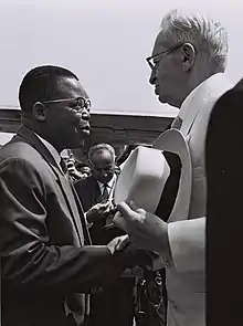 The first meeting between the heads of the two states took place in August 1962, when Israeli President Yitzhak Ben-Zvi went to Léopoldville (now Kinshasa) and met his Congolese counterpart, Joseph Kasa-Vubu.[3]